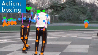 First we develop a classifier trained on the 3D RGB video data, obtaining a high-precision model with a mean class accuracy of 97.34% in only a few epochs. We go one step further though, since we want the system to learn the intrinsic motions that characterize each martial art, so we also develop a skeleton based model. Below we present an example of how this latter architecture works: